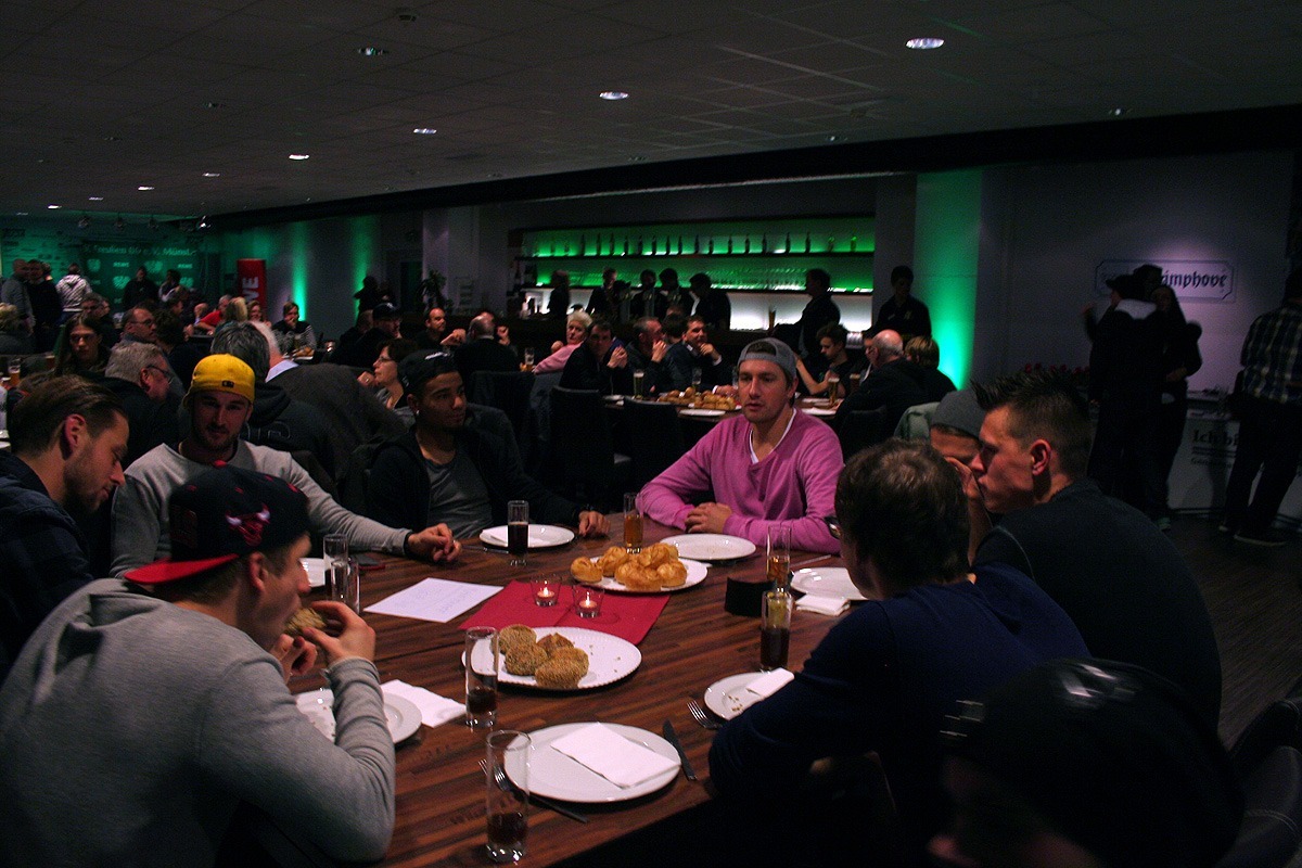 Am 10.01.2015 fand der diesjährige Neujahrsempfang des Fanprojekts statt, die erste große Veranstaltung unter dem neuen Vorstand. Geladen hierzu waren neben den Fanprojektmitgliedern natürlich auch die Mannschaft und der Trainer. Bereits um 18:30 Uhr war der Saal ziemlich voll, so dass es doch schwer wurde für später eintreffende Gäste noch einen der begehrten Sitzplätze an den Tischen zu erwischen.