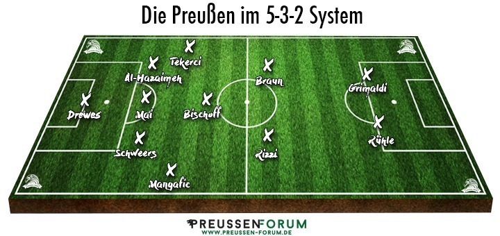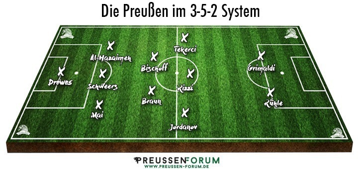 Interessant dürfte auch sein, ob Horst Steffen überhaupt eine Viererkette auflaufen lässt. Mit Al-Hazaimeh kommt ein Spieler, der sowohl auf links, als auch innen agieren kann. Mit Mai und Schweers könnten zwei zweikampfstarke Innenverteidiger neben ihm agieren, die auch ein Spiel von hinten aufbauen können. Eine Dreierkette würde jedoch bedeuten, dass die offensiven Flügelspieler ein enormes Pensum in der Defensivarbeit abspulen müssten, was zu mangelnder Konzentration im Vorwärtsgang führen könnte. Auf der Doppelsechs hätte Bischoff mit Braun einen, von der Spielweise her, ähnlichen Partner wie Jens Truckenbrod in der Saison 2012/2013 neben sich. Michele Rizzi könnte also als Spielmacher agieren, dort wäre Bischoff jedoch nicht so wirkungsvoll, da er ein Spiel lieber vor sich hat, um so die richtige Entscheidung und den tödlichen Pass in der gegnerischen Hälfte zu spielen.