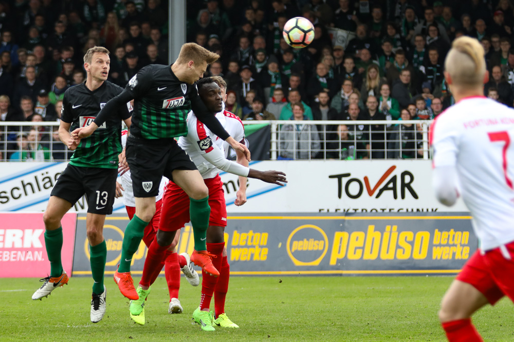 Tobias Rühle war der Pechvogel an diesem Tag. Einen Kopfball nach Freistoß von Rizzi kratzte Poggenborg sensationell von der Linie, ein anderer Schuss wurde auf der Linie geklärt. Besser machte es Sinan Tekerci. Grimaldi setzte sich wieder einmal hervorragend durch, steckte im perfekten Moment auf den eingelaufenen Tekerci durch, der aus halbrechter Position flach mit links vollendete. Mehr als hochverdient war diese Führung und auch sie sollte noch einmal erweitert werden. Der alles überragende Grimaldi schickte Jeron Al-Hazaimeh erneut auf die Reise, der schnelle Linksfuß überlief einmal mehr die statische Defensive der Kölner und chippte den Ball über Poggenborg hinweg. Leider an die Latte, doch Grimaldi stand wie so oft in dieser Partie richtig und drüchte den Ball über die Linie.