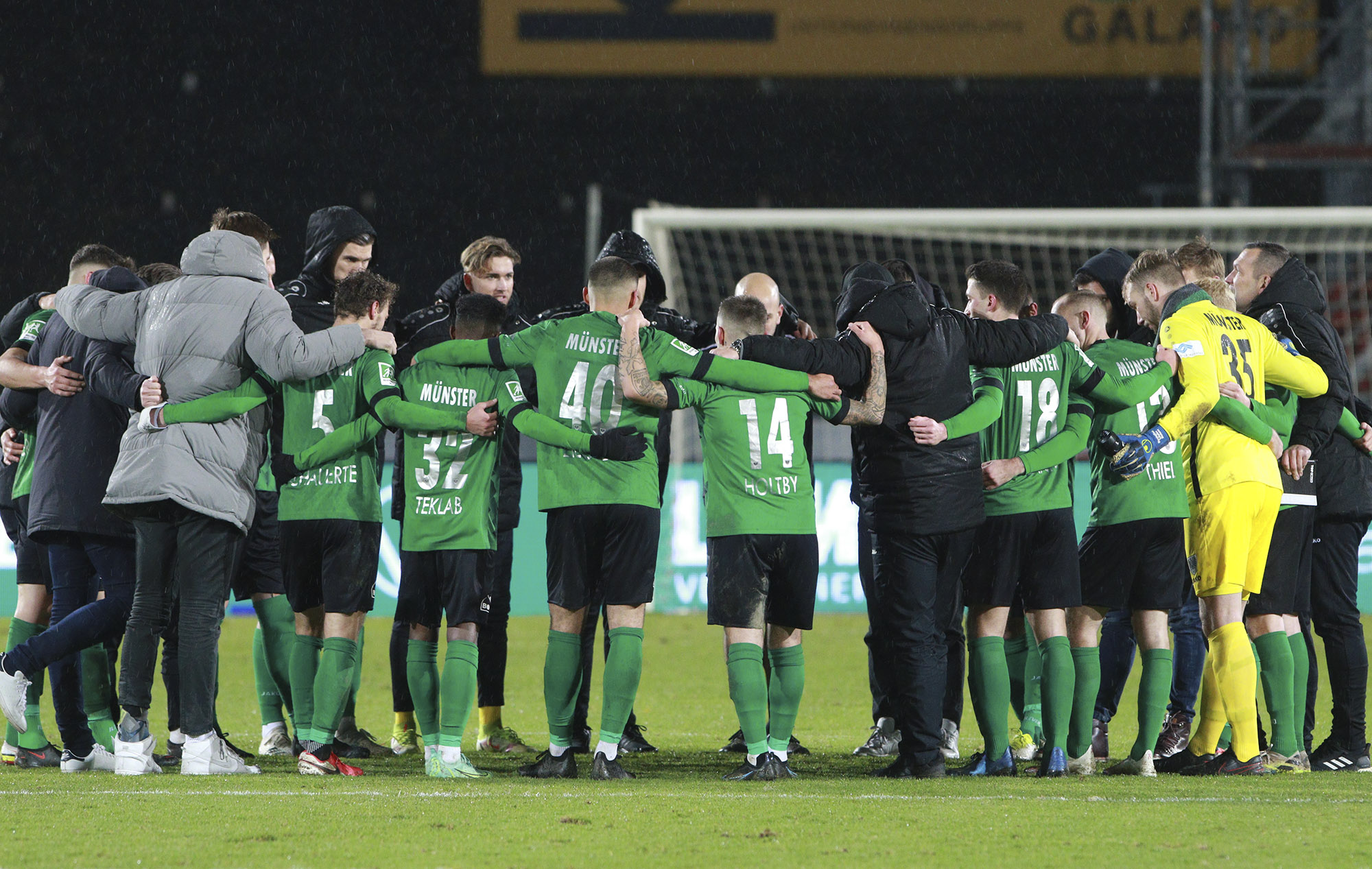 Die Gastgeber nahmen mit dem Rückenwind der winkenden Tabellenführung das Zepter sofort von Beginn an in die Hand und bestimmten die Partie. Mit etwas Glück hätten die Münsteraner bereits nach einer guten Minute in Führung gehen können, doch Marvin Thiels Abschluss fehlte es an Genauigkeit. Erfolgreicher lief es elf Zeigerumdrehungen später: Unser Publikumsliebling Henok Teklab zog von der rechten Strafraumkante ab und traf den Wiedenbrücker Verteidiger Bjarne Pudel, der den Ball entscheidend abfälschte. 1:0 für die Adlerträger!