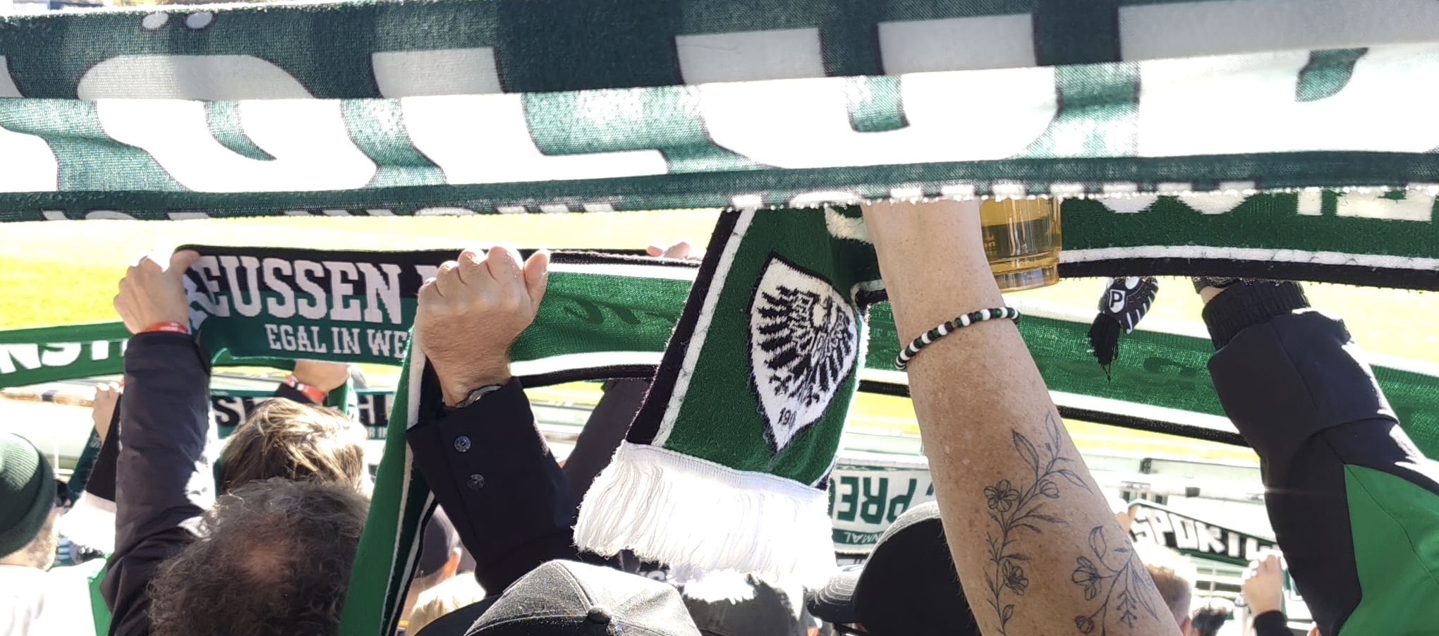 Tom Bauer lässt ganze neun Minute nachspielen, wegen der langen VAR-Unterbrechungen und generell vielen Fouls und kleinen Nickligkeiten beider Mannschaften. In der 90. +2 wechselt Thomas Stamm „Kult“-Stürmer und Kapitän Stefan Kutschke ein. Nach zwei Ballberührungen und einem Pass war aber auch schon wieder Schluss. Denn fernab des Balls landet sein Arm in dem Gesicht von Jorrit Hendrix, gefolgt von einem Wortgefecht. Bauer zögert nicht und zeigt Rot, somit ist er mindestens zwei Spiele gesperrt. So ganz wollte er die Entscheidung aber nicht wahrhaben und diskutierte sowohl mit Baumer als auch mit Jorrit heftig. Als er sich dann doch endlich erbarmte den Platz zu verlassen, begleiteten einige Preußen-Fans dessen Abgang mit einem „Nazis raus!“-Sprechgesang. Denn Kutschke wird immer wieder vorgeworfen Verbindungen zur rechtsextremen Szene zu haben durch ein Fitnessstudio, dass er selber mitgegründet und Anteile haben soll.