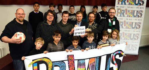 Eine Spende über 2100 Euro hat das Fanprojekt Preußen Münster e.V. der Primus Schule Münster übergeben. Beim Neujahrsempfang des Fanprojekts wurde Anfang Januar nicht nur ausgelassen gefeiert, sondern auch dieser Betrag unter Preußen-Fans für die inklusive Modellschule in Berg Fidel gesammelt.